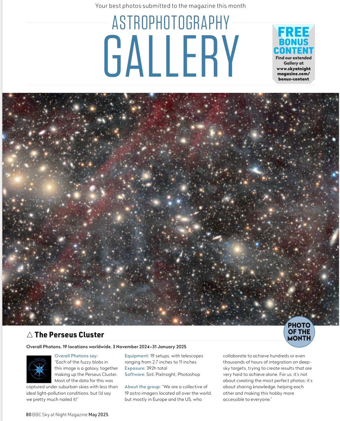 Collaborative projects bring together the efforts of teams of astrophotographers, uniting their work on a single target, to achieve unprecedented depth and detail in astrophotographic imaging. This approach is redefining the standards of the ever-evolving crosstalk between amateur and professional astronomy, opening new pathways to scientific discovery. I am lucky enough to be part of two such international teams, Overall Photons and Deep Sky Companions. Here is what we accomplished.